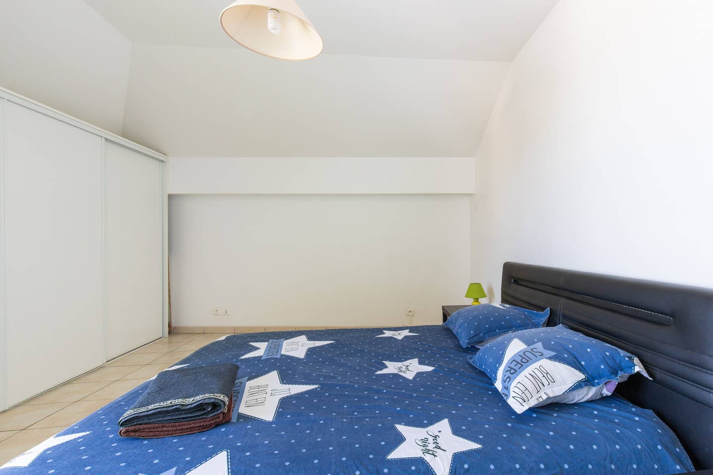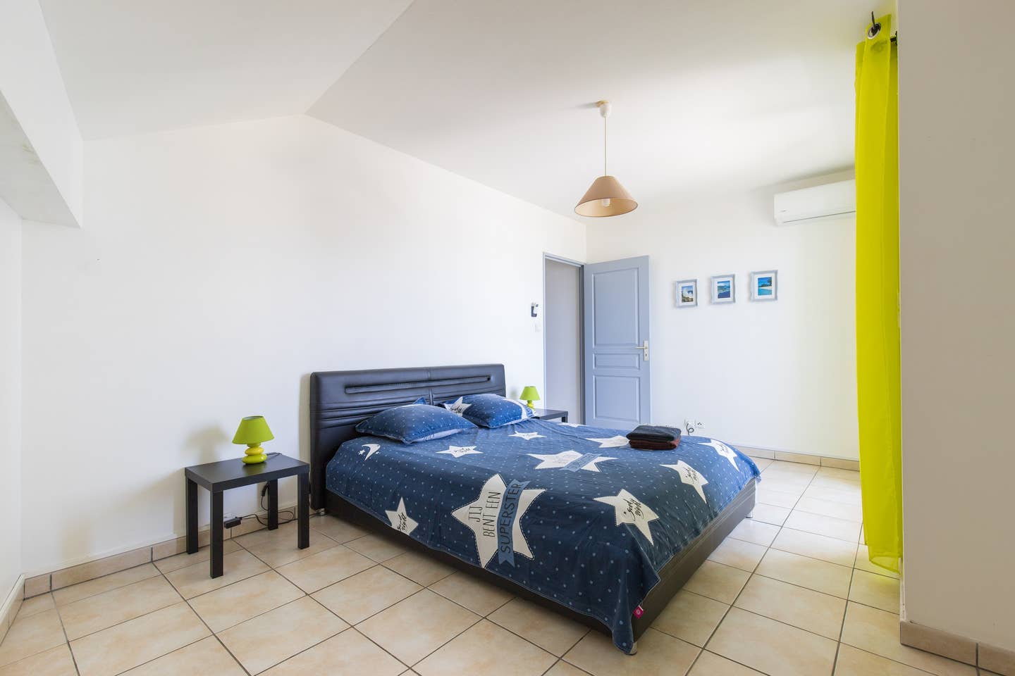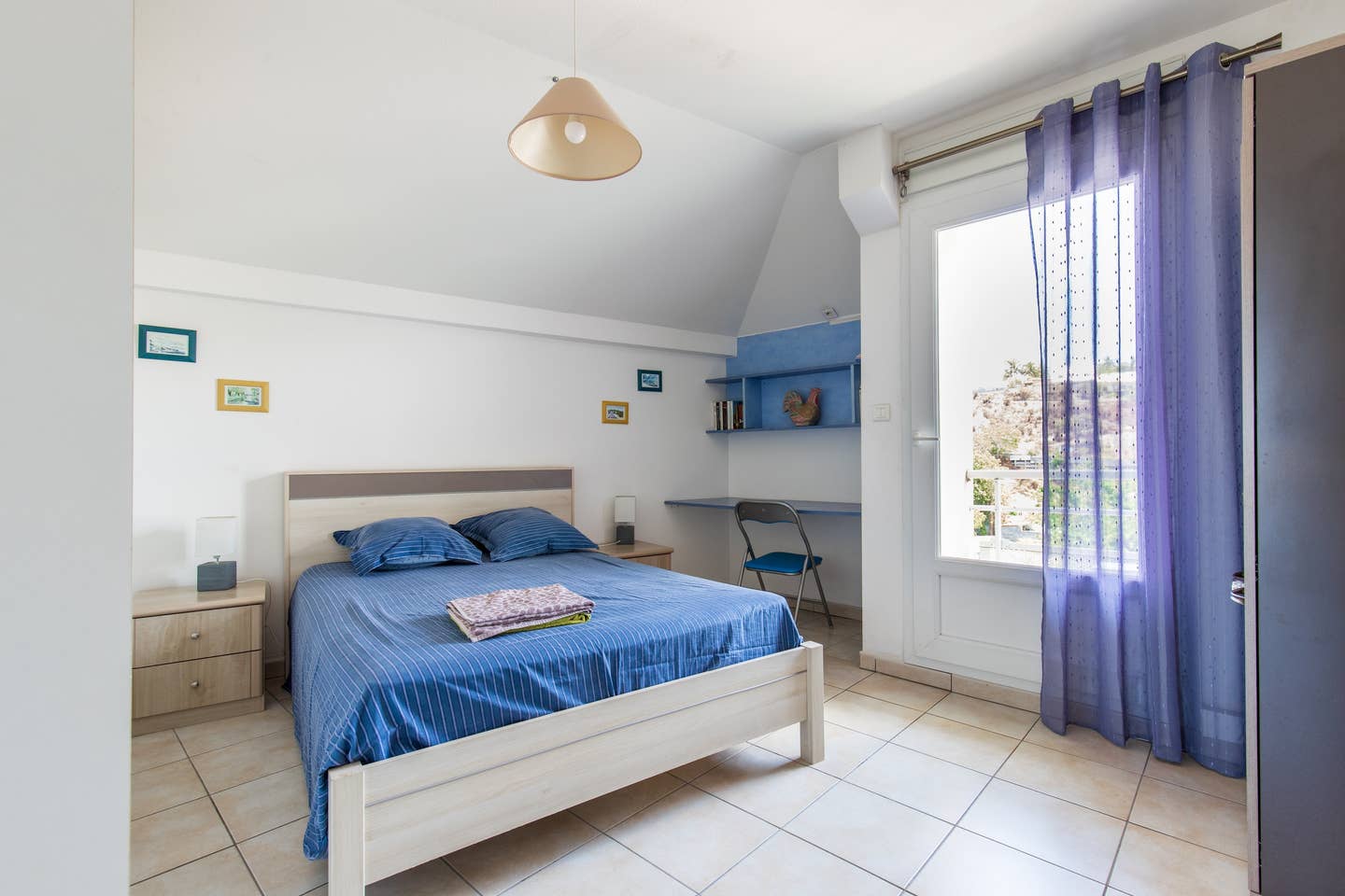 -2 grandes chambres à l’étage avec balcons, climatisées (dont une avec pleine vue mer et port) avec lits double : 140*190 et 160*200.